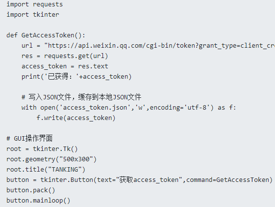 本文使用Python调用微信小程序获取access_token接口进行获取请求凭据。为了便于操作,这边结合了Python自带的GUI库Tkinter。